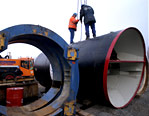 ersten Bauabschnitt der Verlegung des neuen Abwasserkanals an der Elbe durch